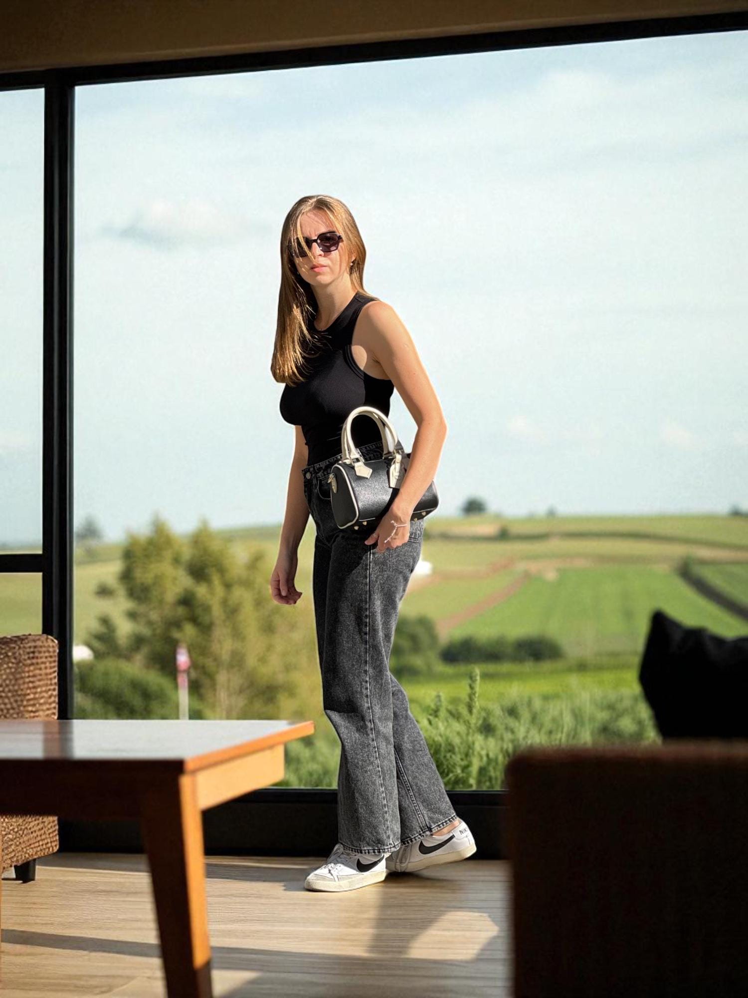 Two Tone Italian Leather Boston Bag Handmade Top